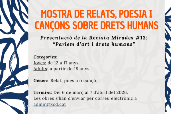 Con motivo de la presentación de la revista Mirades nº 13 sobre Arte y Derechos Humanos, la Federación Xarxa de Cooperació del sur de Catalunya organiza una muestra literaria en…